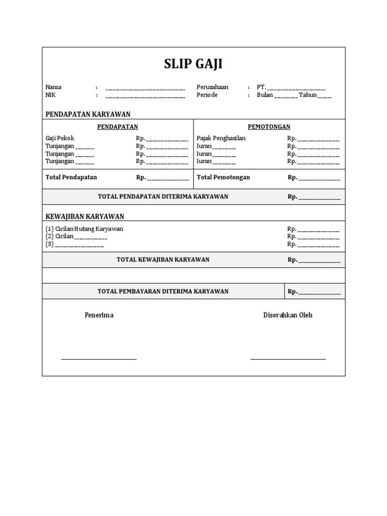 · tanda terima gaji, uang tunggu, pensiun, uang tunjangan, dan pembayaran lainnya yang berkaitan . Isi tanggal lahir anda dengan format (hh/bb/tttt); Bukan objek bea meterai · dokumen berupa : Setiap perusahaan memiliki bentuk atau format slip gaji yang berbeda. Dengan menerima slip gaji resmi, karyawan atau pegawai dapat.